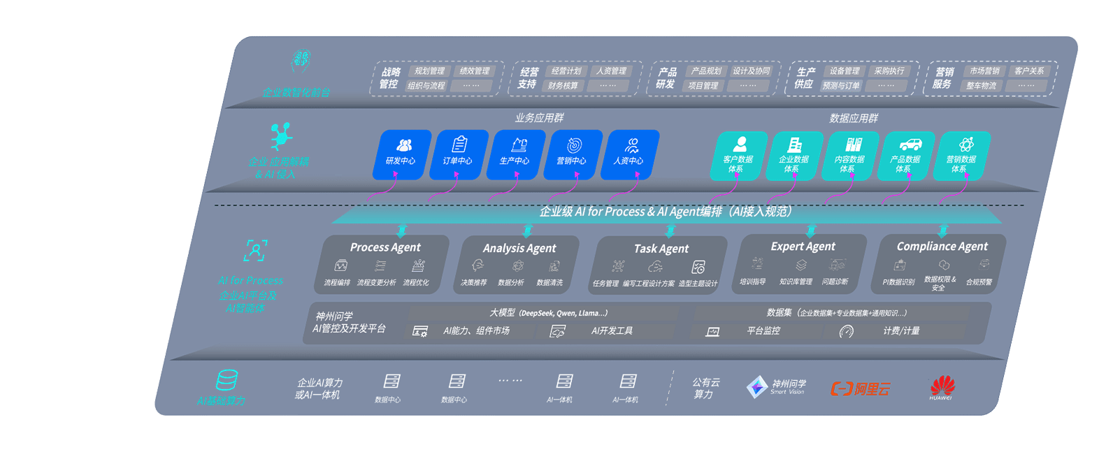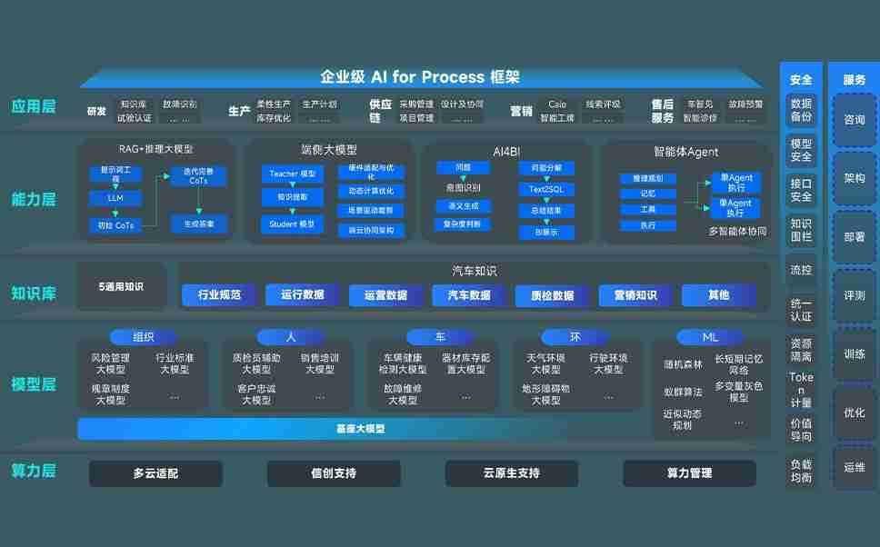 2017金沙集团问学智车解决方案是一套基于AI技术的汽车行业智能化系统,,,覆盖从底层算力到顶层AI应用的全栈方案。。。。方案由算力层、、、模型层和应用层组成:算力层,,方案支持多种一体机配置,,,具备云端灵活部署、、、、多云适配以及动态优化计算资源的能力;模型层,,,,2017金沙集团问学平台版提供了企业级AI应用一站式构建与管理平台,,支持基于后训练强化技术的汽车企业专属模型的训练、、、评测和运营;应用层,,,2017金沙集团问学DeepSeek版提供包括超级员工、、、、智能招采、、智能营销、、智能客服、、、、AI for BI等一系列解决方案,,,,可助力汽车行业实现数字化转型,,,,让管理更智能、、响应更敏捷。。