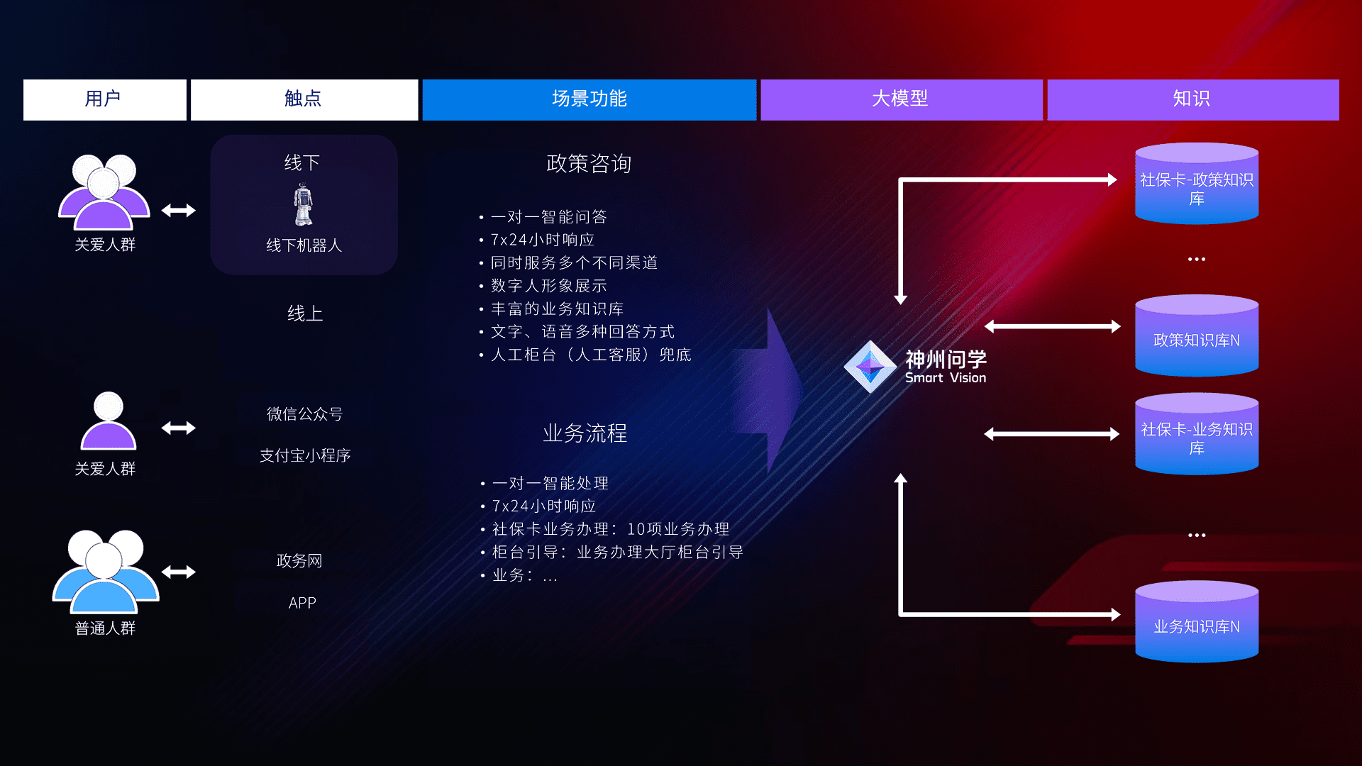 • 线上线下全覆盖:线上提供微信公众号、、支付宝小程序、、、政务网、、app多种渠道,,与线下机器人形成完整服务体系。。。。